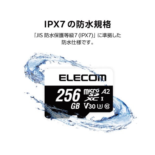 ビデオカメラやVlogカメラにおすすめ!4K対応のmicroSDXCメモリーカードです。 |
