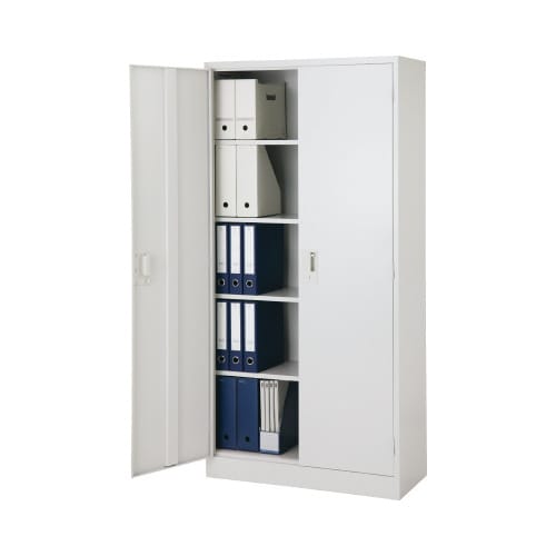 【送料込、組立てサービス付】TSスチール収納 両開きタイプ 下置き用5段 ベース付 サイズ:幅880×奥行380×高さ1790mm カラー:ホワイトグレー