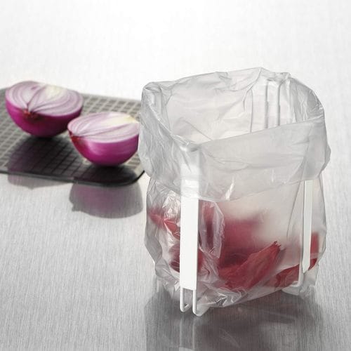 袋をかけて簡易ゴミ受けに便利です。使わない時はコンパクトに収納できます。傷付けにくいゴム足付です。 |