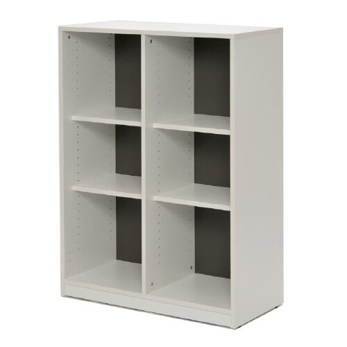 グレーの背板がスタイリッシュなプリーマシリーズの格子型シェルフ2列3段です。棚板は上段が固定棚、可動棚板(ホワイト)が2枚付属しています。 |
