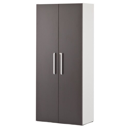グレーの背板がスタイリッシュなプリーマシリーズの格子型シェルフ2列5段グレー全面扉付き。内部上から2段目が固定棚、可動棚板大(ホワイト)が6枚と可動棚板小(グレー)2枚が付属。 |