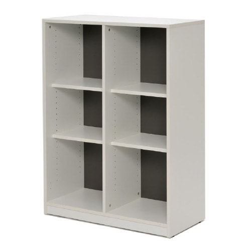 グレーの背板がスタイリッシュなプリーマシリーズの格子型シェルフ2列5段タイプ。棚板は上から2段目が固定棚、ほか可動棚板大(ホワイト)が6枚と可動棚板小(グレー)が2枚付属 |