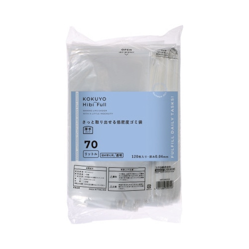 ヒビフル さっと取り出せる低密度ゴミ袋 70L 詰め替え 厚手 厚さ0.04mm 透明 1パック(120枚入り) ごみ袋 ポリ袋 ツルツルタイプ 取り出しやすい 業務用 KOKUYO HibiFull