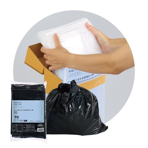 ヒビフル さっと取り出せる低密度ゴミ袋 70L 詰め替え 厚手 厚さ0.04mm 黒 1パック(120枚入り) ごみ袋 ポリ袋 ツルツルタイプ 取り出しやすい 業務用 KOKUYO HibiFull