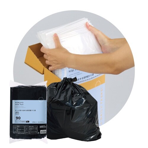 ヒビフル さっと取り出せる低密度ゴミ袋 90L 詰め替え 厚手 厚さ0.05mm 黒 1パック(120枚入り) ごみ袋 ポリ袋 ツルツルタイプ 取り出しやすい 業務用 KOKUYO HibiFull