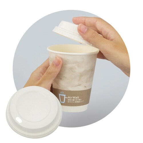 空気の層で手が熱くなりにくい断熱紙コップ9オンス(260ml)にカチっとはまる専用の紙製フタ。紙製なので使用後は分別せずに廃棄する事ができます。両面ラミネート加工で温かい飲料でも柔らかくなりにくい。 |