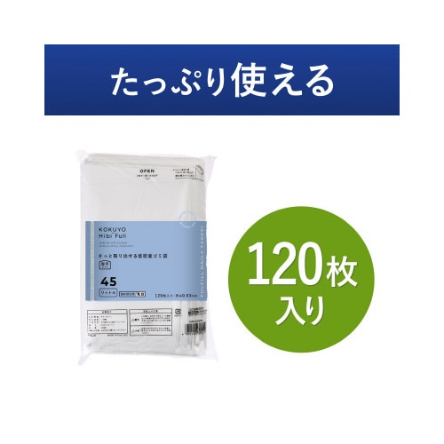 ヒビフル さっと取り出せる低密度ゴミ袋 45L 詰め替え 厚手 厚さ0.03mm 乳白 1セット(120枚入り×5) ごみ袋 ツルツルタイプ 取り出しやすい 業務用 KOKUYO HibiFull
