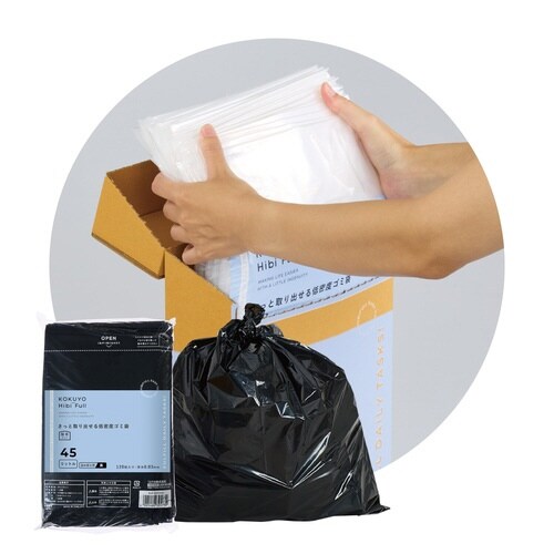 ヒビフル さっと取り出せる低密度ゴミ袋 45L 詰め替え 厚手 厚さ0.03mm 黒 1セット(120枚入り×5) ごみ袋 ツルツルタイプ 取り出しやすい 業務用 KOKUYO HibiFull
