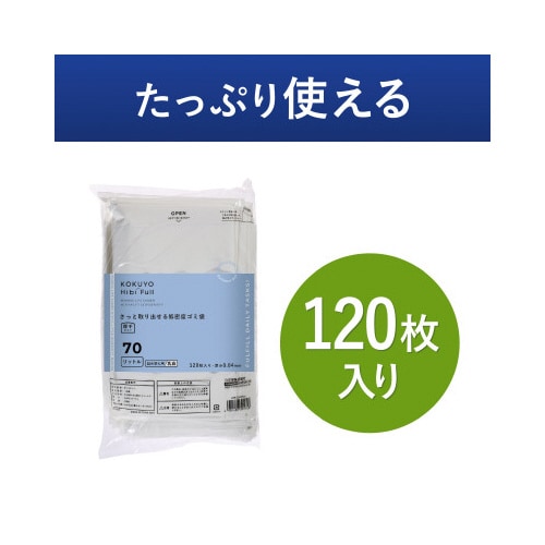 ヒビフル さっと取り出せる低密度ゴミ袋 70L 詰め替え 厚手 厚さ0.04mm 乳白 1セット(120枚入り×3) ごみ袋 ツルツルタイプ 取り出しやすい 業務用 KOKUYO HibiFull
