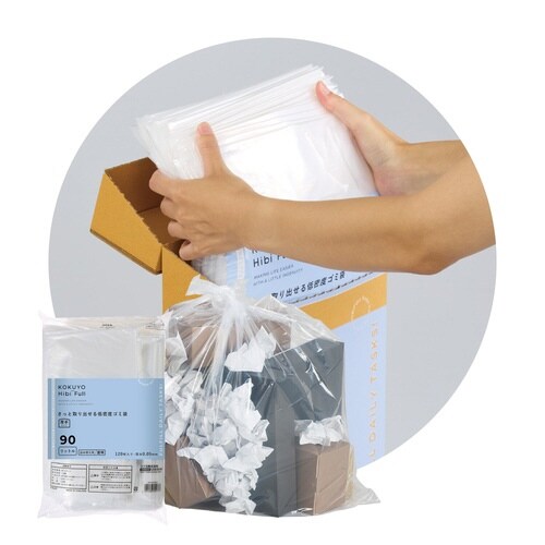 ヒビフル さっと取り出せる低密度ゴミ袋 90L 詰め替え 厚手 厚さ0.05mm 透明 1セット(120枚入り×2) ごみ袋 ツルツルタイプ 取り出しやすい 業務用 KOKUYO HibiFull