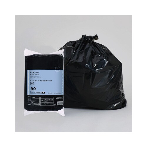 ヒビフル さっと取り出せる低密度ゴミ袋 90L 詰め替え 厚手 厚さ0.05mm 黒 1セット(120枚入り×2) ごみ袋 ツルツルタイプ 取り出しやすい 業務用 KOKUYO HibiFull