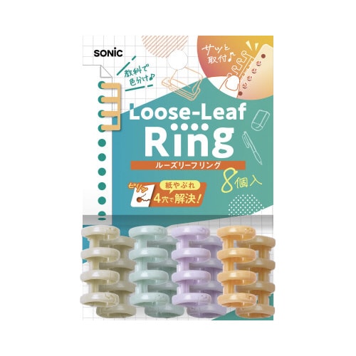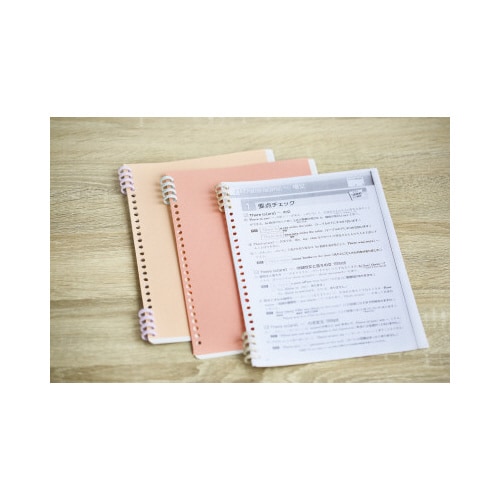 カンタン、サッと取付できる4穴式のカラフルなリング。必要な分だけルーズリーフをリングで綴じて持ち運べるから、通学中やスキマ時間の持ち出し学習に便利。 |