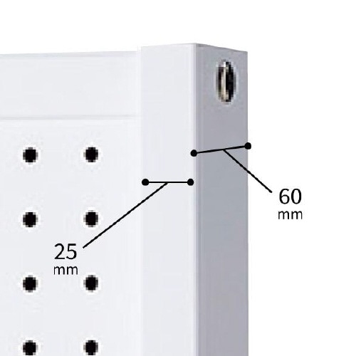 パネルは2枚合わせになっているので表裏で同じ高さにオプションが取り付けできます。DIYで壁面収納に人気のパンチングボードと呼ばれる有孔ボードはフックも取り付けやすく陳列の自由度の高いおすすめ什器です。 |