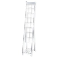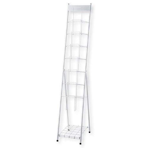 ポケットをアーチ状にしているためパンフレットやチラシが前垂れしません。1ポケットにコピー用紙150枚分入ります。一番下のネット棚にストックを置くことができます(取り外し不可)折りたたみ式で設置が簡単。 |