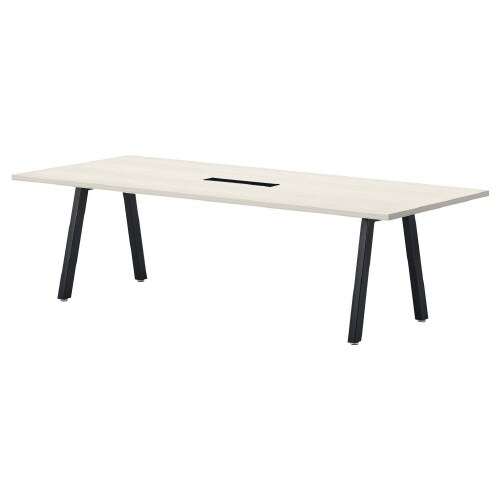 ミーティング用テーブルBL角型 W2400D1200H720 ワイヤリングBOX付 天板:ホワイトグレイン、脚:ブラック BL−B2412KW−WG 1台【メーカー直送・軒先渡し・お客様組立】