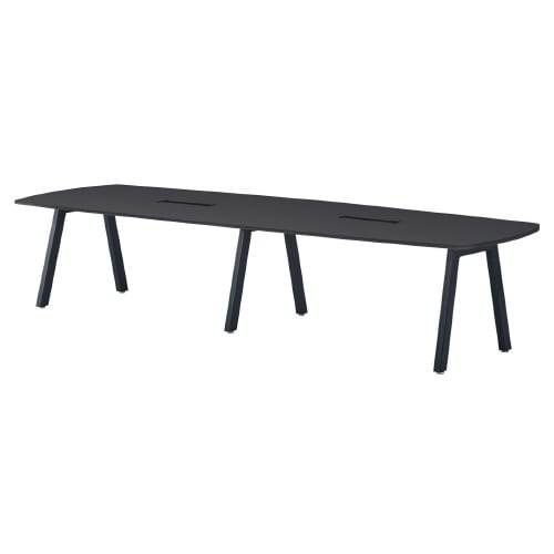 ミーティング用テーブルBLオーバル W3600D1200H720 ワイヤリングBOX付 天板:マットグレイ、脚:ブラック BL−B3612VW−MG 1台【メーカー直送・軒先渡し・お客様組立】
