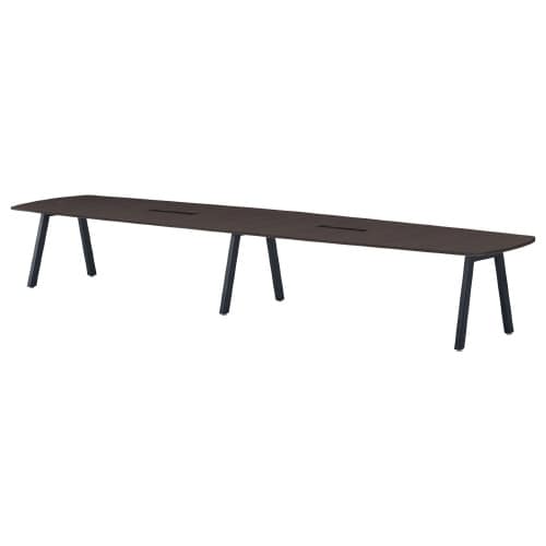 ミーティング用テーブルBLオーバル W4000D1400H720 ワイヤリングBOX付 天板:ダークウッド、脚:ブラック BL−B4014VW−DW 1台【メーカー直送・軒先渡し・お客様組立】