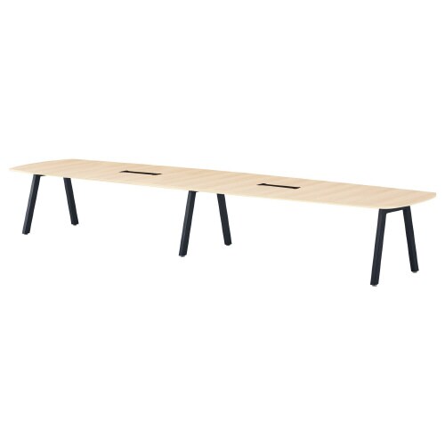 ミーティング用テーブルBLオーバル W4800D1200H720 ワイヤリングBOX付 天板:ライトオーク、脚:ブラック BL−B4812VW−LO 1台【メーカー直送・軒先渡し・お客様組立】