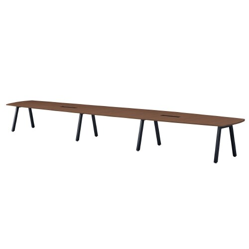ミーティング用テーブルBLオーバル W5600D1400H720 ワイヤリングBOX付 天板:ウォールナット、脚:ブラック BL−B5614VW−WN 1台【メーカー直送・軒先渡し・お客様組立】