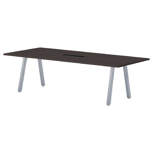 ミーティング用テーブルBL角型 W2400D1200H720 ワイヤリングBOX付 天板:ダークウッド、脚:シルバー BL−S2412KW−DW 1台【メーカー直送・軒先渡し・お客様組立】