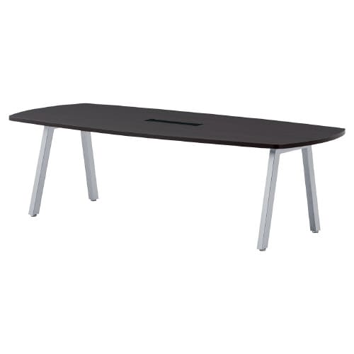 ミーティング用テーブルBLオーバル W2400D1200H720 ワイヤリングBOX付 天板:ダークウッド、脚:シルバー BL−S2412VW−DW 1台【メーカー直送・軒先渡し・お客様組立】