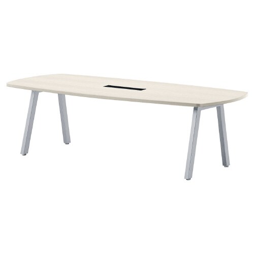 ミーティング用テーブルBLオーバル W2400D1200H720 ワイヤリングBOX付 天板:ホワイトグレイン、脚:シルバー BL−S2412VW−WG 1台【メーカー直送・軒先渡し・お客様組立】