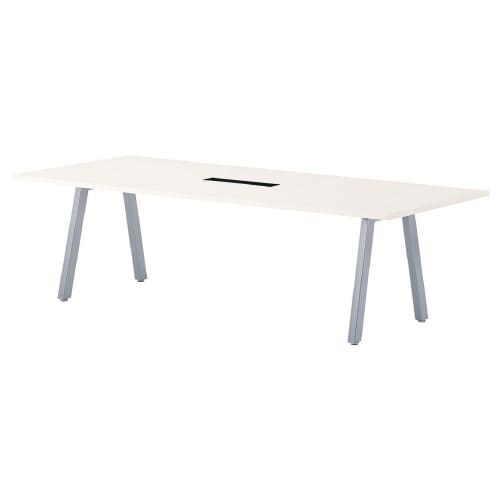 ミーティング用テーブルBL角型 W2800D1200H720 ワイヤリングBOX付 天板:オフホワイト、脚:シルバー BL−S2812KW−OW 1台【メーカー直送・軒先渡し・お客様組立】