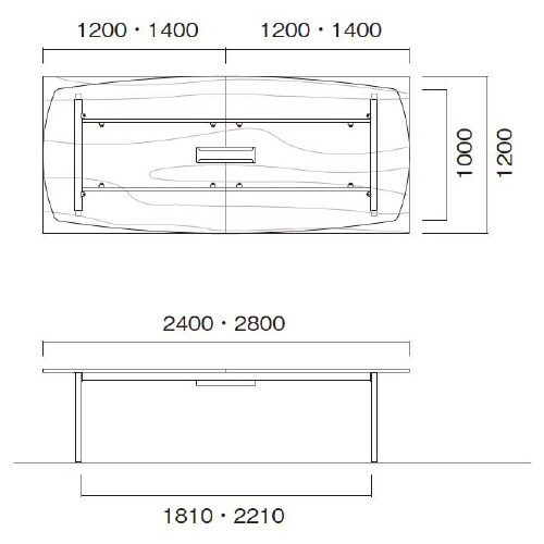 八の字足で安定感抜群。天板は耐水・耐熱性に優れた高圧メラミン化粧板で傷が付きにくくなっております。 |