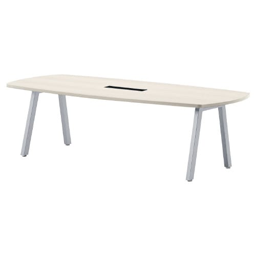 ミーティング用テーブルBLオーバル W2800D1200H720 ワイヤリングBOX付 天板:ホワイトグレイン、脚:シルバー BL−S2812VW−WG 1台【メーカー直送・軒先渡し・お客様組立】