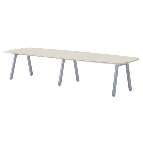 ミーティング用テーブルBLオーバル W3200D1200H720 ワイヤリングBOX無 天板:ホワイトグレイン、脚:シルバー BL−S3212V−WG 1台【メーカー直送・軒先渡し・お客様組立】