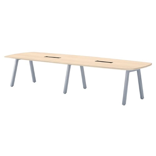 ミーティング用テーブルBLオーバル W3200D1200H720 ワイヤリングBOX付 天板:ライトオーク、脚:シルバー BL−S3212VW−LO 1台【メーカー直送・軒先渡し・お客様組立】