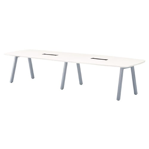ミーティング用テーブルBLオーバル W3200D1200H720 ワイヤリングBOX付 天板:オフホワイト、脚:シルバー BL−S3212VW−OW 1台【メーカー直送・軒先渡し・お客様組立】