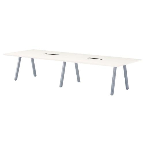 ミーティング用テーブルBL角型 W3600D1200H720 ワイヤリングBOX付 天板:オフホワイト、脚:シルバー BL−S3612KW−OW 1台【メーカー直送・軒先渡し・お客様組立】