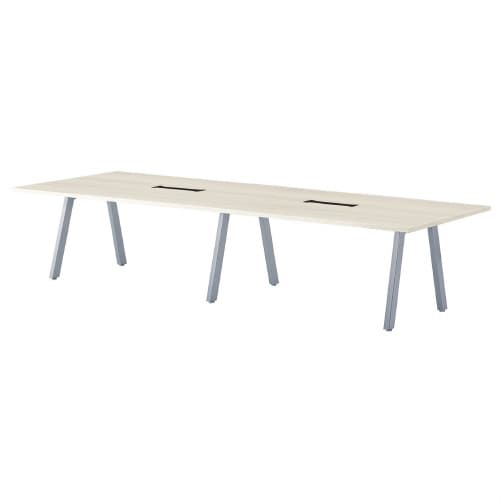 ミーティング用テーブルBL角型 W3600D1200H720 ワイヤリングBOX付 天板:ホワイトグレイン、脚:シルバー BL−S3612KW−WG 1台【メーカー直送・軒先渡し・お客様組立】