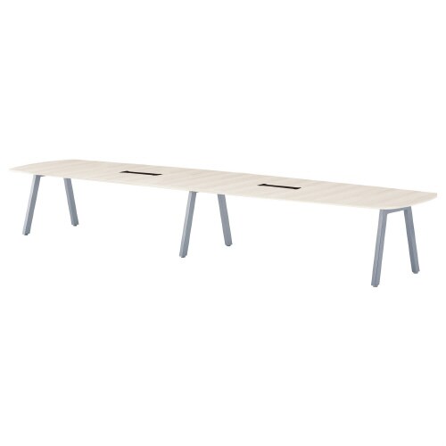 ミーティング用テーブルBLオーバル W4000D1400H720 ワイヤリングBOX付 天板:ホワイトグレイン、脚:シルバー BL−S4014VW−WG 1台【メーカー直送・軒先渡し・お客様組立】