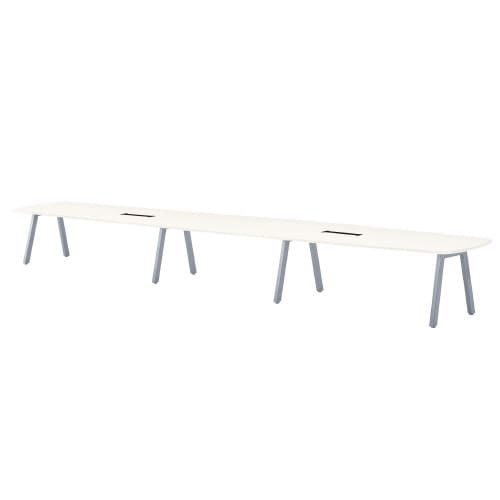 ミーティング用テーブルBLオーバル W5600D1200H720 ワイヤリングBOX付 天板:オフホワイト、脚:シルバー BL−S5612VW−OW 1台【メーカー直送・軒先渡し・お客様組立】