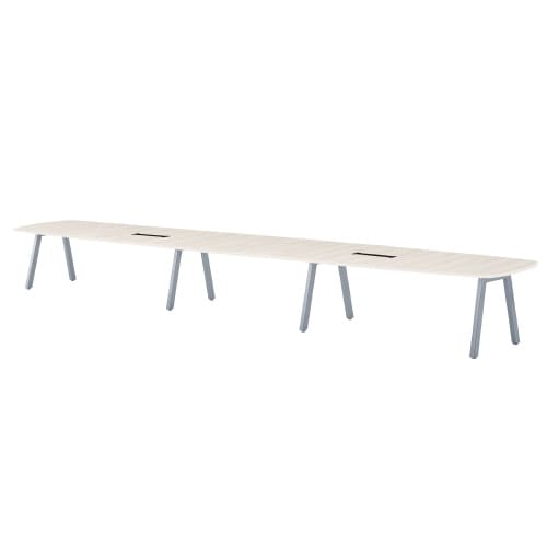 ミーティング用テーブルBLオーバル W5600D1200H720 ワイヤリングBOX付 天板:ホワイトグレイン、脚:シルバー BL−S5612VW−WG 1台【メーカー直送・軒先渡し・お客様組立】