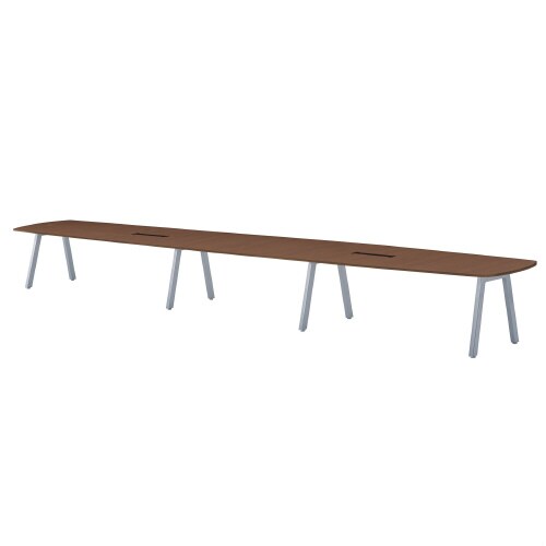 ミーティング用テーブルBLオーバル W5600D1200H720 ワイヤリングBOX付 天板:ウォールナット、脚:シルバー BL−S5612VW−WN 1台【メーカー直送・軒先渡し・お客様組立】