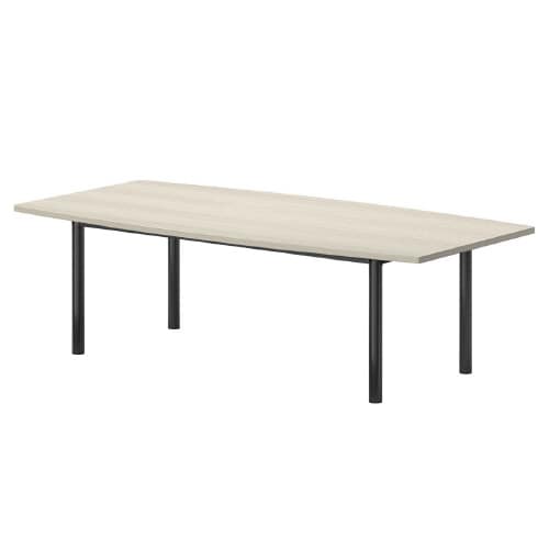ミーティング用テーブルGT舟形 W2400D1200H720 ワイヤリングBOX無 天板:ホワイトグレイン、脚:ブラック GT−B2412F−WG 1台【メーカー直送・軒先渡し・お客様組立】