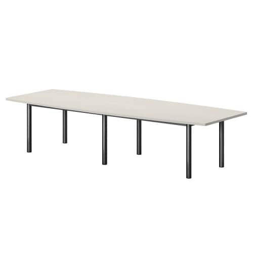 ミーティング用テーブルGT舟形 W3200D1200H720 ワイヤリングBOX無 天板:ホワイトグレイン、脚:ブラック GT−B3212F−WG 1台【メーカー直送・軒先渡し・お客様組立】
