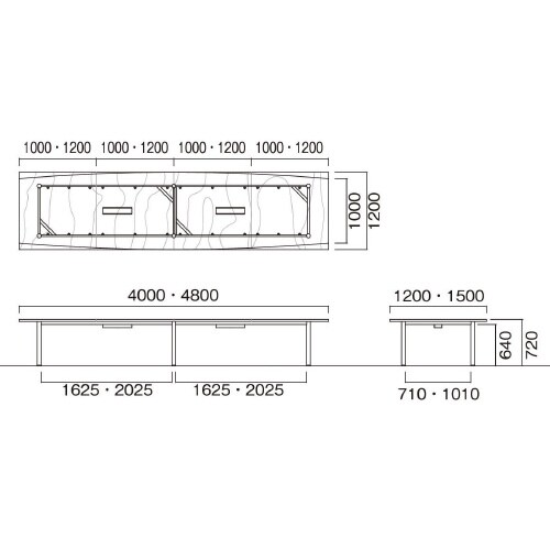 ミーティング用テーブルGT舟形 W4000D1500H720 ワイヤリングBOX付 天板:ホワイトグレイン、脚:ブラック GT−B4015FW−WG 1台【メーカー直送・軒先渡し・お客様組立】