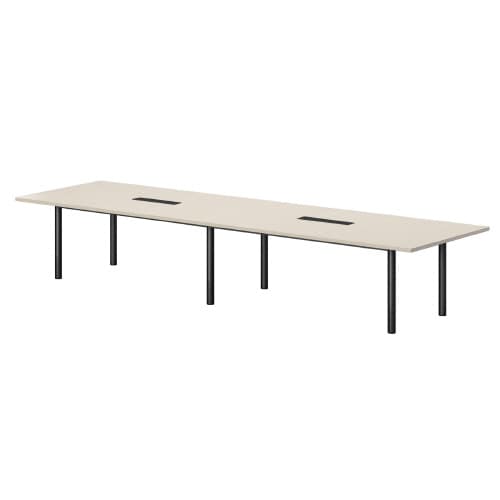 ミーティング用テーブルGT角型 W4800D1200H720 ワイヤリングBOX付 天板:ホワイトグレイン、脚:ブラック GT−B4812KW−WG 1台【メーカー直送・軒先渡し・お客様組立】