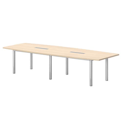 ミーティング用テーブルGT舟形 W3200D1200H720 ワイヤリングBOX付 天板:ライトオーク、脚:シルバー GT−S3212FW−LO 1台【メーカー直送・軒先渡し・お客様組立】