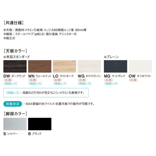 φ60.5のしっかりとした脚部で安定感のあるビッグテーブルです。天板は耐水・耐熱性に優れた高圧メラミン化粧板で傷が付きにくくなっております。 |