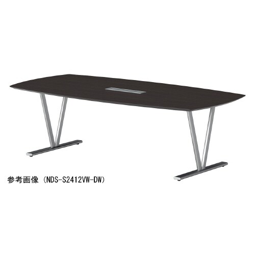 ミーティング用テーブルNDSオーバル W2400D1200H720 ワイヤリングBOX付 天板:ダークウッド、脚:シルバー NDS−S2412VW−DW 1台【メーカー直送・軒先渡し・お客様組立】