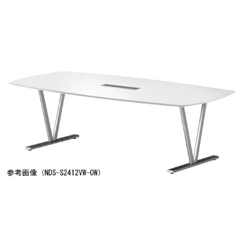 ミーティング用テーブルNDSオーバル W2400D1200H720 ワイヤリングBOX付 天板:オフホワイト、脚:シルバー NDS−S2412VW−OW 1台【メーカー直送・軒先渡し・お客様組立】