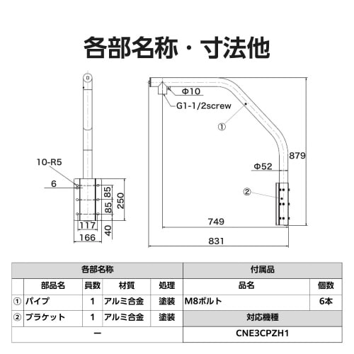 屋外用PTZカメラ専用の壁面取付グースネック金具です。対応機種:CNE3CPZH1。 |
