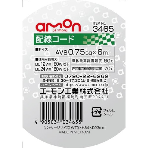 耐油性・耐候性に優れた自動車用配線コード 0.75sq×6m(青) 耐油性・耐候性に優れた自動車用配線コード |