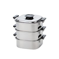 使いやすい角型のコンパクトな2段蒸し器です。電磁調理器対応です。