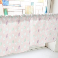 小さな窓や出窓でふわっと風に吹かれて揺れるかわいいカフェカーテンです。目隠しや装飾目的で使うことも多く、キッチン周りや棚の目隠しにも使えます。